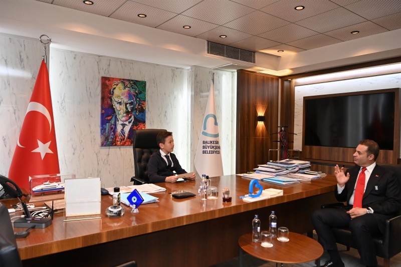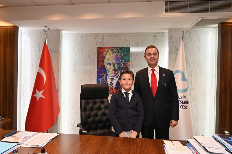 Balıkesir Büyükşehir Belediye Başkanı Ahmet Akın, 23 Nisan Ulusal Egemenlik ve Çocuk Bayramı dolayısıyla koltuğunu temsili olarak Didar, Aras, Belis ve minik Aybars’a devretti.