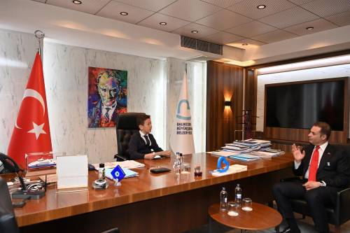 Balıkesir Büyükşehir Belediye Başkanı Ahmet Akın, 23 Nisan Ulusal Egemenlik ve Çocuk Bayramı dolayısıyla Bilnet Okulları öğrencileri Didar Beste Deniz, Aras Biçer, Belis Biçer ve Atatürk Şehir Hastanesi Anaokulu öğrencisi Aybars Gedik’e devretti. Bütün çocukları tek tek öperek karşılayan Akın, öğrenciler ve öğretmenleriyle sohbet etti. Başkanlık koltuğunu devretmeden önce kısa bir konuşma gerçekleştiren Balıkesir Büyükşehir Belediye Başkanı Ahmet Akın, ziyaretten duyduğu memnuniyeti dile getirdi. Büyükşehir Belediye Başkanlığı makamını temsili olarak bir günlüğüne devralan çocuklar, kente ve çocuklara dair gerçekleşmesini istedikleri talepleri Akın’a iletti. Çocukların fikirlerini ve isteklerini dinleyen Akın, çocukların 23 Nisan Ulusal Egemenlik ve Çocuk Bayramını kutladı. Ne istediğini ve ne yaptığını bilen bir neslin yetiştiğini ifade eden Akın, “23 Nisan, aynı zamanda geleceğimizin ve demokrasimizin teminatı olan çocuklarımıza armağan edilmiş bir bayram olarak tarihte az sayıda liderin gösterebileceği bir düşüncenin de sembolüdür. Büyük Önderimiz Gazi Mustafa Kemal Atatürk; tam bağımsız, demokratik ve çağdaş Türkiye Cumhuriyeti’nin teminatı olan çocuklarımızın değerini kavramış ve milli iradenin yegâne evi olan Meclisimizin açıldığı bu kutlu günü çocuklarımıza armağan etmiştir. Biz de Balıkesir’imizde bu düşünceyi örnek alarak çalışıyoruz” dedi.