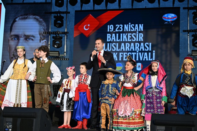 Konser alanını dolduran vatandaşlara hitap eden Akın, “Ulu Önderimiz Gazi Mustafa Kemal Atatürk’ün tüm dünya çocuklarına armağan ettiği bir bayramı hep birlikte evlatlarımızla kutluyoruz. Ulu Önderimiz, ebedi Başkomutanımız Gazi Mustafa Kemal Atatürk’e şükranlarımızı sunuyoruz. Bundan sonra her yıl 19-23 Nisan tarihleri arasında yeni bir festivalimiz başlıyor. En değerlilerimizin festivali. Balıkesir Uluslararası Çocuk Festivali olacak. Ve git gide büyüyecek. Bu sene ilkini yaptık. Bu yıl dört ülkeden çocuklarımızı misafir ettik. Gürcistan, Litvanya, Ukrayna ve Meksika. Gelecek yıl bunu arttırarak devam edeceğiz” diye konuştu.