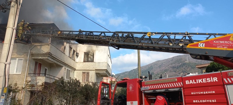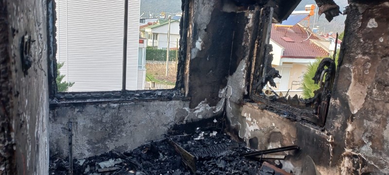 Erdek’te bir binanın 3. Katında elektrik kontağından kaynaklı çıkan yangında ev tamamen küle döndü.