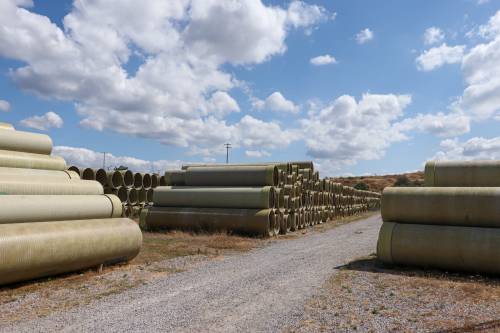 Cumhurbaşkanlığı Strateji ve Bütçe Başkanlığı tarafından sağlanan 60 milyon TL’lik ödenekle, Havran Ovası 2. Kısım Sulama Projesi için gerekli finansman sağlandığını hatırlatan Canbey, “O dönem hem AK Partili Balıkesir Büyükşehir Belediyemiz, hem Valiliğimiz hem de DSİ ile birlikte bir protokol imzalandı. Bu protokolle boru temini ve döşeme sorumluluğu BASKİ’ye verildi. 9.300 metrelik boru temin edildi, fakat yalnızca 350 metrelik kısmı döşendi. Geriye kalan borular, Havran ilçemizin Büyükdere mahallesi girişindeki depoda çürümeye terk edilmiş durumda,” dedi.