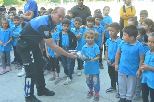 “Bir Adım Bin Umut” projesi kapsamında Balıkesir’in Savaştepe ilçesinin ziyaret eden Polis ekipleri, ilk olarak Savaştepe’nin Sarıbeyler Mahallesi İlköğretim okulunu ziyaret etti. Burada öğrencilere meslek tanıtımı yapan polisler, proje hakkında öğrencilere ve öğretmenlere de bilgiler verdi. Proje kapsamında öğrencilerin sosyal ve kültürel gelişimine katkı sağlayan kursun açıldığını açıklayan polis ekipleri, talep olması halinde bu kurslara öğrenci kayıtlarının yapılabileceğini açıkladı. Sarıbeyler İlkokulu ziyaretinin ardından Savaştepe merkezde bulunan Cumhuriyet İlkokulunu ziyaret eden ekipler, burada da öğrencilerle buluştu. Cumhuriyet İlkokulunda da meslek tanıtımı yapan Polislere, öğrenciler büyük ilgi gösterdi. (Rabia Şevval Çakmak)