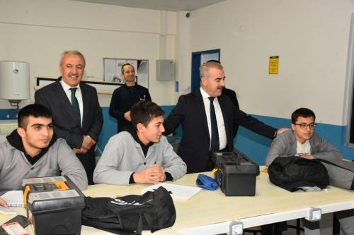 Ardından Tıbbiyeli Hikmet Mesleki ve Teknik Anadolu Lisesi ziyaret edilerek okulun atölyeleri ve sınıfları gezildi. Öğrencilerin mesleki eğitim süreçleri hakkında bilgi alan Müdür Murat Demir, öğrencilere başarılar dileyerek eğitim hayatlarında yanlarında olduklarını ifade etti. Öğretmenlerle gerçekleştirilen toplantıda, mesleki eğitimdeki gelişmeler ve ihtiyaçlar ele alındı. Eğitimde kaliteli bir öğrenim ortamı oluşturmanın önemi bir kez daha vurgulandı.
