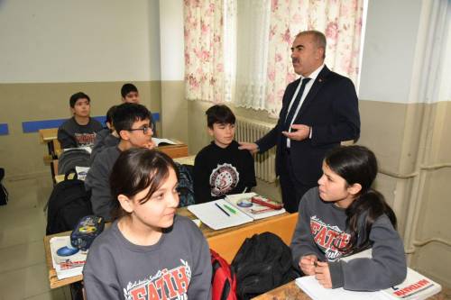 İlk olarak Fatih Ortaokulu’nu ziyaret eden Müdürü Murat Demir, okulun farklı birimlerinde incelemelerde bulunarak öğretmen ve öğrencilerle birebir görüşmeler gerçekleştirdi. Eğitim süreçlerine dair geri bildirimler alınarak öğrencilere başarı dileklerinde bulunuldu. Öğretmenlerle yapılan toplantıda, onların eğitimdeki değerli katkıları vurgulandı ve eğitim süreçlerinin daha verimli hale getirilmesi için fikir alışverişinde bulunuldu.