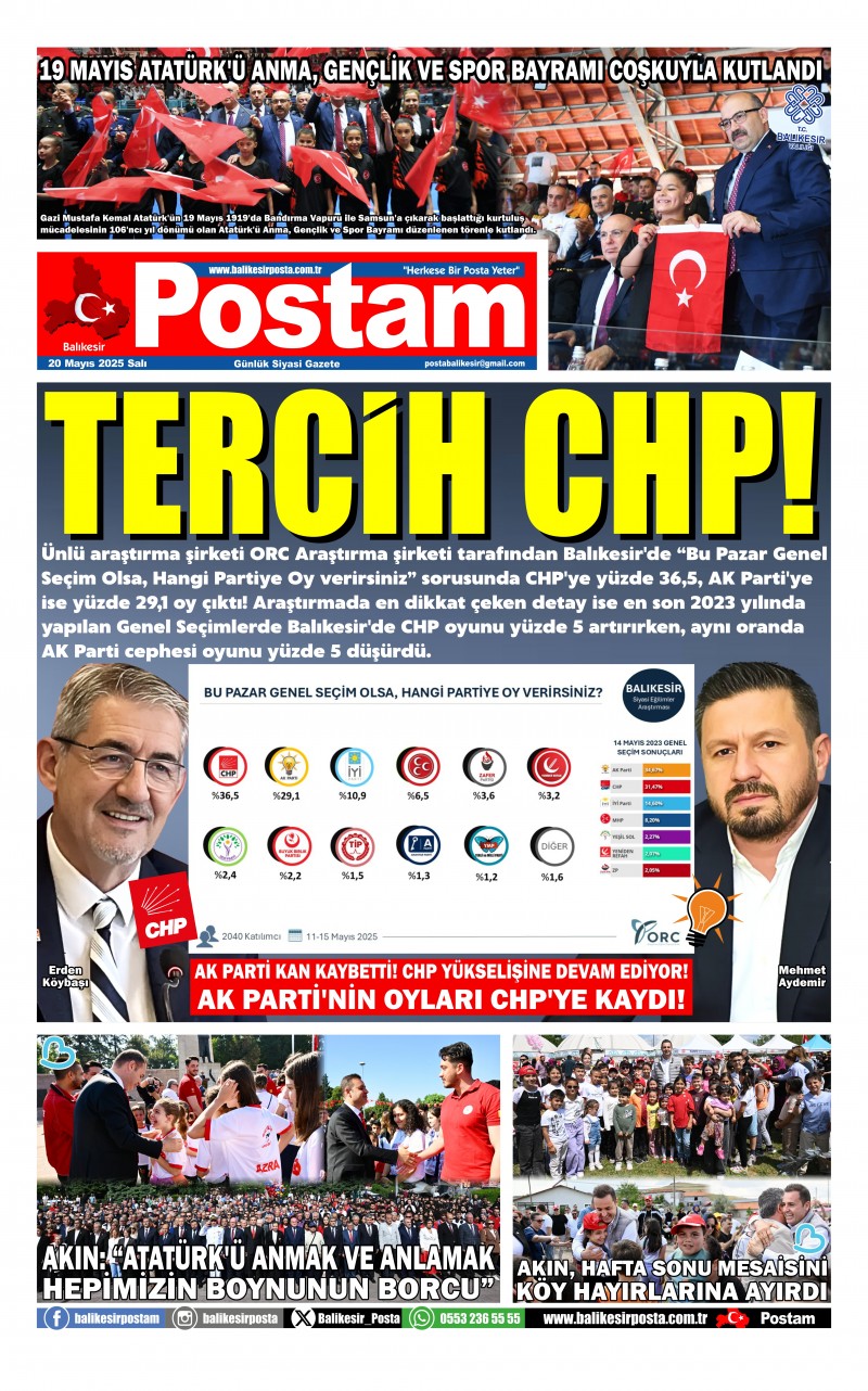 Ünlü araştırma şirketi ORC Araştırma şirketi tarafından Balıkesir’de “Bu Pazar Genel Seçim Olsa, Hangi Partiye Oy verirsiniz” sorusunda CHP’ye yüzde 36,5, AK Parti’ye ise yüzde 29,1 oy çıktı! Araştırmada en dikkat çeken detay ise en son 2023 yılında yapılan Genel Seçimlerde Balıkesir’de CHP oyunu yüzde 5 artırırken, aynı oranda AK Parti cephesi oyunu yüzde 5 düşürdü.