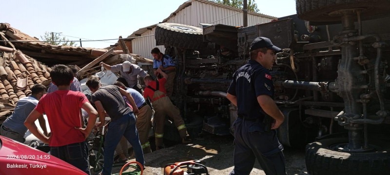 Manyas'ta çıkan orman yangına müdahale etmek için yola çıkan yangın söndürme arazözü bir otomobille çarpıştı. Yaşanan kazada 3 kişi yaraladı.