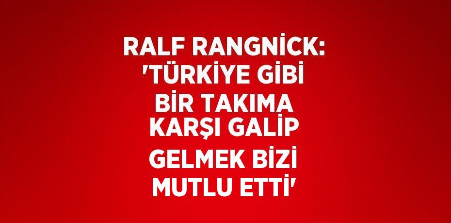 RALF RANGNİCK: 'TÜRKİYE GİBİ BİR TAKIMA KARŞI GALİP GEL ...