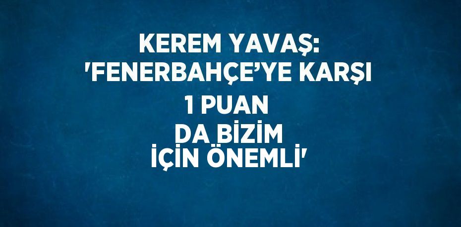 KEREM YAVAŞ: 'FENERBAHÇE’YE KARŞI 1 PUAN DA BİZİM İÇİN ...