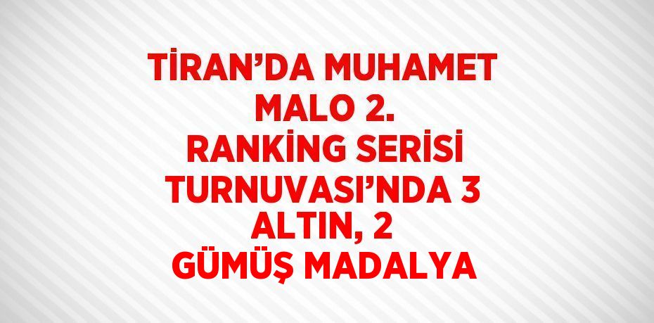 TİRAN’DA MUHAMET MALO 2. RANKİNG SERİSİ TURNUVASI’NDA 3 ...