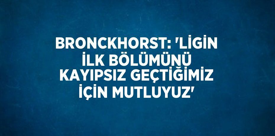 BRONCKHORST: 'LİGİN İLK BÖLÜMÜNÜ KAYIPSIZ GEÇTİĞİMİZ İÇ ...