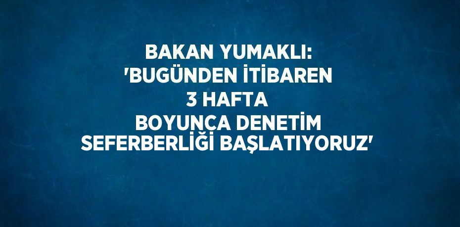 BAKAN YUMAKLI: 'BUGÜNDEN İTİBAREN 3 HAFTA BOYUNCA DENET ...