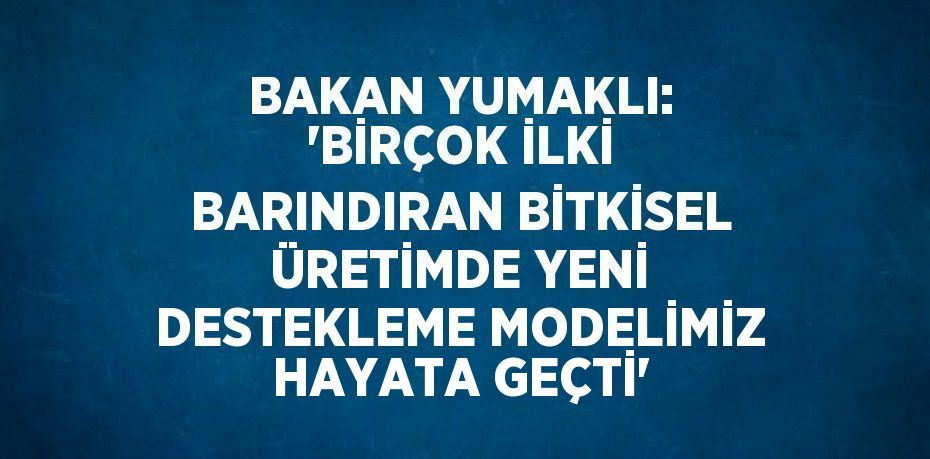 BAKAN YUMAKLI: 'BİRÇOK İLKİ BARINDIRAN BİTKİSEL ÜRETİMD ...