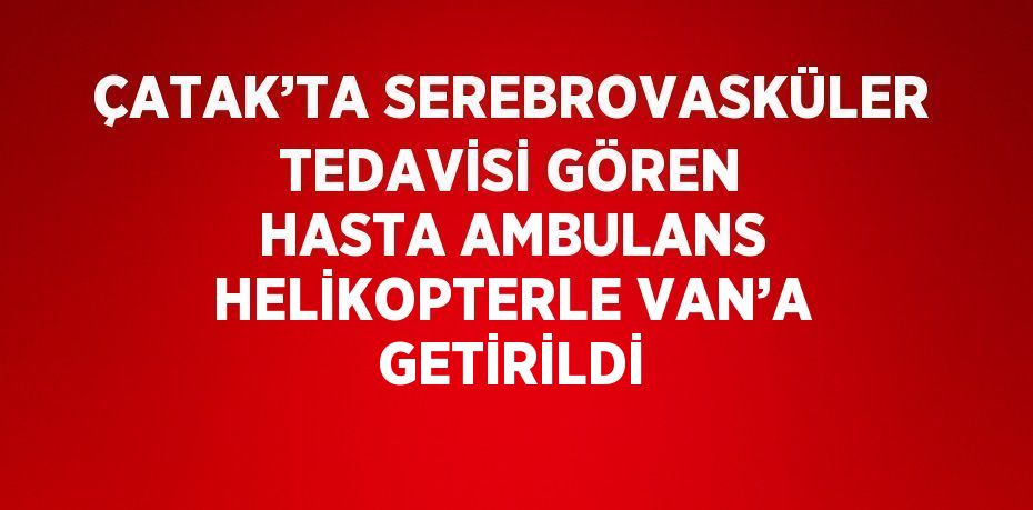ÇATAK’TA SEREBROVASKÜLER TEDAVİSİ GÖREN HASTA AMBULANS ...