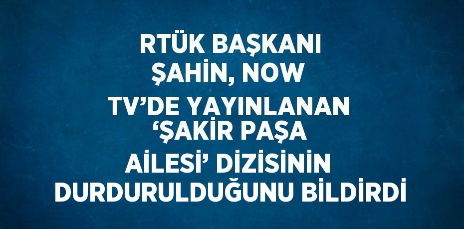 RTÜK BAŞKANI ŞAHİN, NOW TV’DE YAYINLANAN ‘ŞAKİR PAŞA Aİ ...