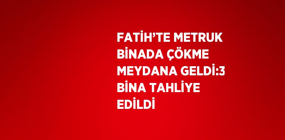 FATİH’TE METRUK BİNADA ÇÖKME MEYDANA GELDİ:3 BİNA TAHLİ ...
