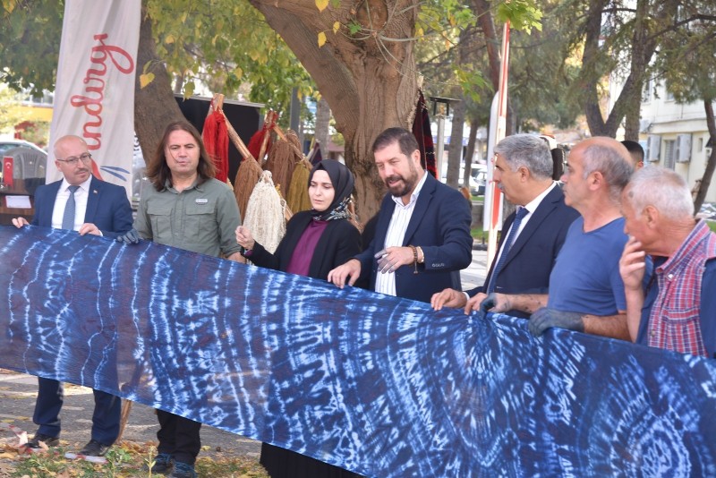 Anadolu’nun renklerinin dünyaya ilham verdiğini belirten Doç. Dr. Mustafa Genç, “Biz aslında burada bir bakıma tereciye tere sattık. Çünkü Sındırgı, Anadolu'nun dokuma kültürü içerisinde Yağcıbedir Sındırgı halılarıyla çok özel bir kültüre sahip. Zaten üzerinde kullanılan motifleri, iplerinde kullanılan doğal boya madde kaynaklarıyla yaklaşık 3 bin yıllık bir dokuma kültürü geleneğini bugüne kadar taşınmasına vesile olan ender güzel yerlerden biri. Biz de hem büyükşehrin hem de Sındırgı Belediyesi'nin desteğiyle, bu etkinlikte geçmişten gelen bu değerleri bugün nasıl yorumlayabiliriz, bugün hayatımıza nasıl dâhil edebiliriz ve geleceğin markalarını, geleceğin modernini, yenisini, çağdaşını nasıl üretebiliriz sorusundan yola çıkarak, bugün burada hem geleneksel halı kilim dokumada kullanılan iğleri hem de kumaşları boyayarak aslında bugün hayatımızda giyim, tekstilinde, ev tekstilinde her yerde bunun kullanılabileceğini ortaya koymak istedik ve buna çalıştık” ifadelerine yer verdi.