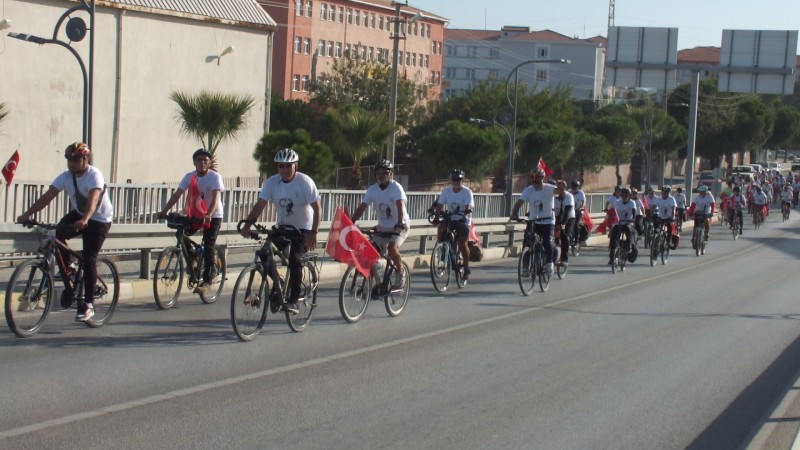Burhaniye’deki bisiklet turuna, Burhaniyeli bisikletçilerin yanı sıra Edremit ve Ayvalık’tan da bisikletçiler katıldı. Atatürk Spor Salonu'nun önünden hareket eden 100 bisikletli, 5 kilometrelik Ören turunun ardından Cumhuriyet Meydanı'na geldi. Trafik polislerinin eskortluk yaptığı bisiklet turunda heyecan yaşandı. Cumhuriyet Meydanı'na gelen bisikletçiler, saygı duruşunda bulundu ve İstiklal Marşını okudu. Müdür Aslan Alparslan yaptığı konuşmada, bisikletçilere teşekkür etti.