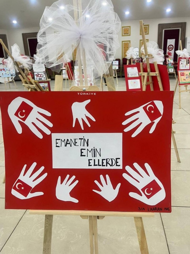 Velilerden dizeler, 100 yılda Cumhuriyet temalı resimler, öğretmen ve öğrencilerimiz tarafından yapılan etkinliklerin sergilendiği Cumhuriyet sergisinde; "100 Yılda 100 Eserle" temasıyla veliler arasında düzenlenen şiir yarışmasında dereceye giren velilere ödülleri verildi. Öğrenci velisi Buket Yuna tarafından yazılan "Ben 100 Yaşındayım" şiiri 1. seçildi. (Haber Merkezi)