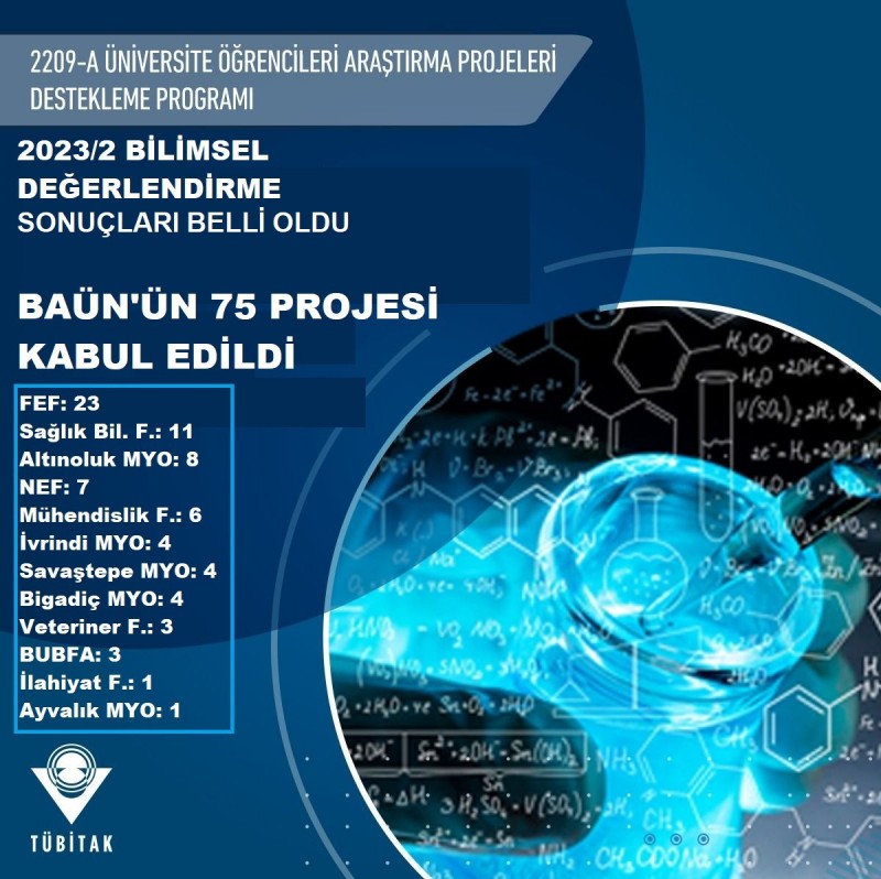 Balıkesir Üniversitesi akademik birimlerinden; Fen-Edebiyat Fakültesi, Mühendislik Fakültesi, Necatibey Eğitim Fakültesi, Sağlık Bilimleri Fakültesi, Veteriner Fakültesi, İlahiyat Fakültesi, Burhaniye Uygulamalı Bilimler Fakültesi, Altınoluk Meslek Yüksekokulu, İvrindi Sağlık Hizmetleri Meslek Yüksekokulu, Savaştepe Meslek Yüksekokulu ve Ayvalık Meslek Yüksekokulu öğrencileri tarafından sunulan toplam 139 projenin 75’i desteklenmeye hak kazandı.