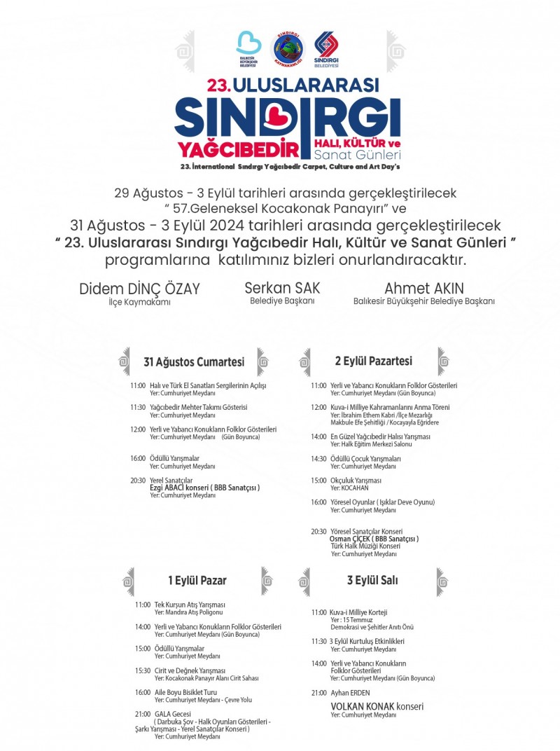 23. ULUSLARARASI SINDIRGI YAĞCIBEDİR HALI, KÜLTÜR VE SANAT SANAT GÜNLERİ