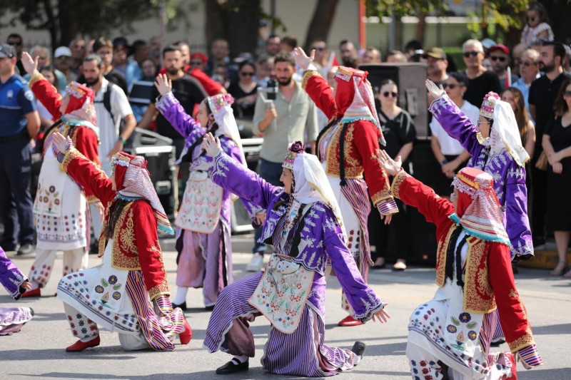 Daha sonra, “Bir Bayrak Rüzgâr Bekliyor”, ‘Zafer Türküsü ve Bir Yolcuya isimli şiirler okundu. Bandırma Gençlik Spor İlçe Müdürlüğü halk oyunları ekibi tarafından hazırlanan halk oyunları gösterisi sergilendi. Resmi tören, askerlerin, öğrencilerin ve kamuya ait araçların yer aldığı geçit töreni ile tamamlandı.