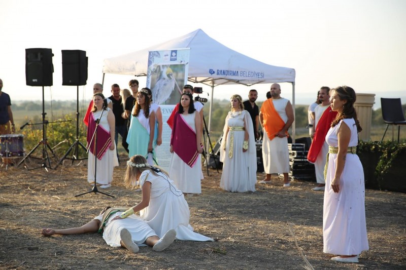 32. Uluslararası Bandırma Kuşcenneti Kültür ve Turizm Festivali’nin 3'üncü gününde Daskyleion antik kentinde "Kuruluş Efsanesi" adlı Tragedya ve Bursa Devlet Senfoni Orkestrası’nın gösterisi düzenlendi. Çok sayıda katılım sağlanan gösteri oldukça beğeni görürken, "Canlı Heykel" performansı ilgi çekti. Sanatseverler de fotoğraf çektirmek için sıraya girdi.