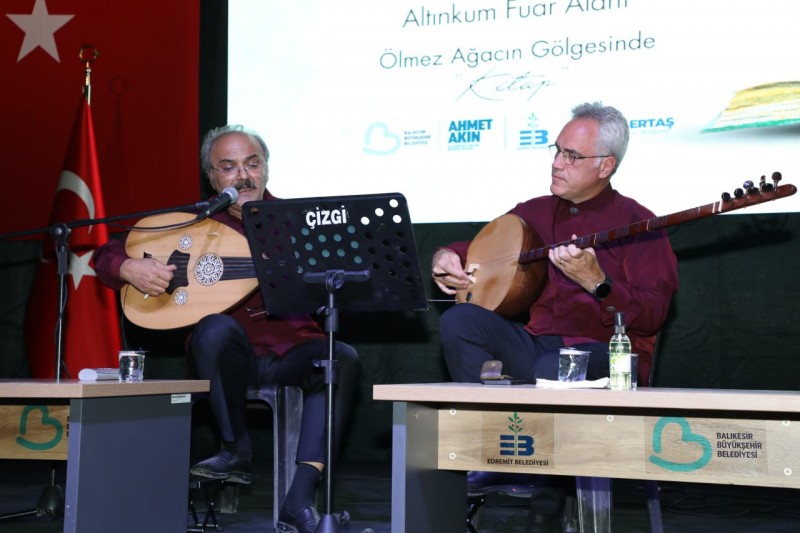 Türk Sanat Müziği ses sanatçısı ve ud virtüözü İsmail Hakkı Fencioğlu ile tamburi Özata Ayan, Edremit Kitap Fuarı’nda sahne aldı. Muhteşem performanslarıyla katılımcılara unutulmaz bir gece yaşatan sanatçılar, fuarın atmosferini müziğin büyüsüyle birleştirerek geceyi sonlandırdı. Bu anlamlı etkinlik, izleyicilerden tam not aldı.