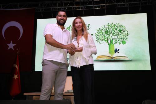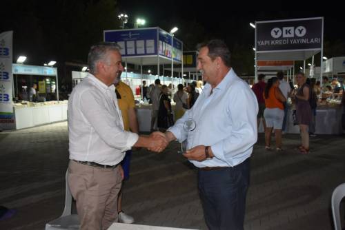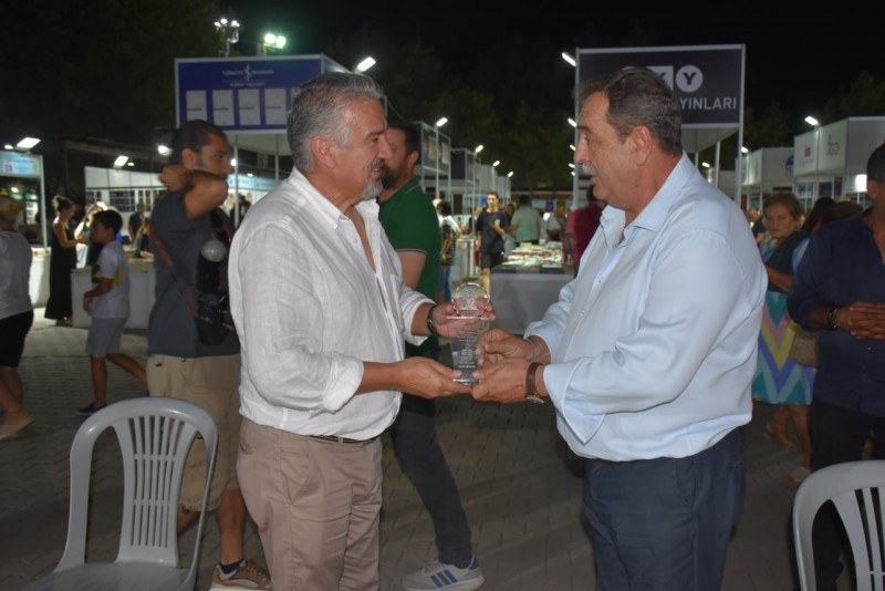 Günün bir diğer etkinliğinde, gazeteci ve yazar Sinan Akyüz, okuyucularıyla bir araya geldi. Roman yazarlığının inceliklerini anlattığı söyleşide, yazarlık sürecinde dikkat ettiği hususları ve yeni yazarlara önerilerini paylaştı. Akyüz’e, bu değerli paylaşımlarının ardından plaketini, Önceki dönem Gömeç Belediye Başkanı Mehmet İrem Himam takdim etti.