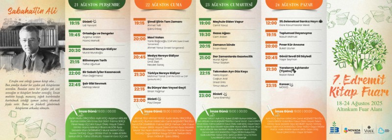 Fuar, 18-24 Ağustos 2025 tarihleri arasında Altınkum Fuar Alanı'nda gerçekleşecek. Etkinlikler ve imza günleri 19:00 - 00:00 saatleri arasında düzenlenecek.