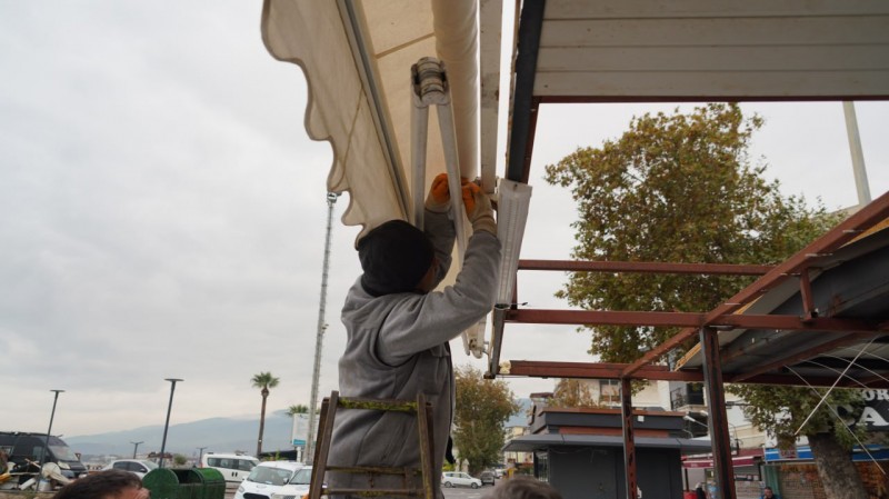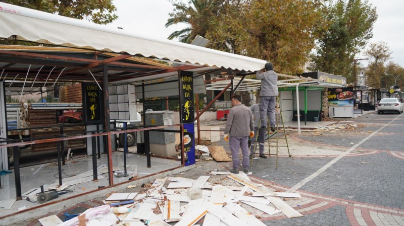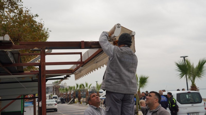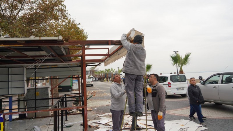 Edremit Belediyesi ekipleri, Akçay sahilinde çevre düzenleme çalışmaları kapsamında, çevreyi işgal ettiği ve görüntü kirliliğine yol açtığı tespit edilen büfeleri kaldırmaya devam ediyor.