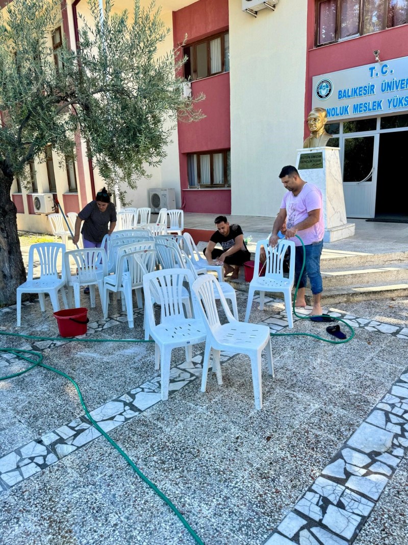 Balıkesir Üniversitesi Rektörü Prof. Dr. Yücel Oğurlu'nun desteği ile başlatılan çalışmalar neticesinde yüksekokul bünyesinde bulunan ve çevre okullardan kullanılamaz duruma gelmiş ve hurdaya ayrılmış bir çok malzeme toplanarak yapılan yenileme çalışmaları ile geri dönüştürülüp yeniden kullanımına alındı. Yeniden kullanımı mümkün olmayan duvar saatleri ve ahşap ürünler ise farklı alanlarda değerlendirilerek ışıklı tabela ve görsel amaçlı kullanıldı. Ayrıca Yüksekokul personeli eğitim ortamlarının kalitesini arttırmak ve öğrencilerine daha iyi bir öğrenim deneyimi sunmak adına yaz boyu yapmış olduğu özverili çalışmalar ile her hangi bir kamu kaynağı kullanılmaksızın Yüksekokulu A dan Z ye bakıma alarak büyük bir dönüşüm gerçekleşmesini ve daha modern bir eğitim kurumu haline gelmesini sağladı. Meslek Yüksekokulu Müdürü Prof. Dr. Selami Selvi yaptığı açıklamada şu ifadelere yer verdi. "Cumhurbaşkanlığı tasarruf tedbirleri yayımlanınca bizde meslek yüksek okulu olarak nasıl bir katkıda bulunabiliriz dedik. Okulumuzda eskiyen, boyası dökülmüş demirbaş eşyalar, eskimesinden dolayı hurdaya çıkmış masa, sandalye, saat, ders sırası ve tamir edilecek tüm eşyaları personelimizin de yardımı ile tamir ederek, boyayarak, temizleyerek atıl durumdan, faal duruma getirerek kullanılmasını sağladık ve milyonlarca liralık bir tasarruf elde ettik. Tasarruf tedbirleri gereğince yaptığımız bu çalışmalara destek veren başta rektörümüz olmak üzere tüm personelimize teşekkür ediyorum" dedi.
