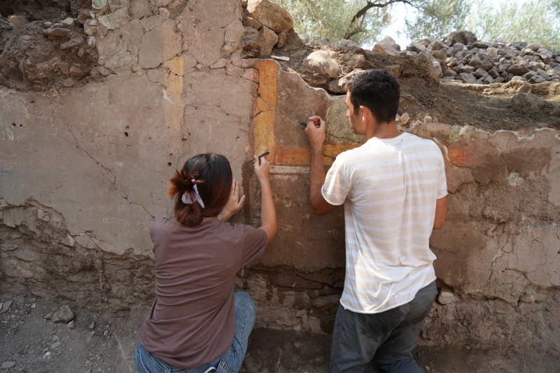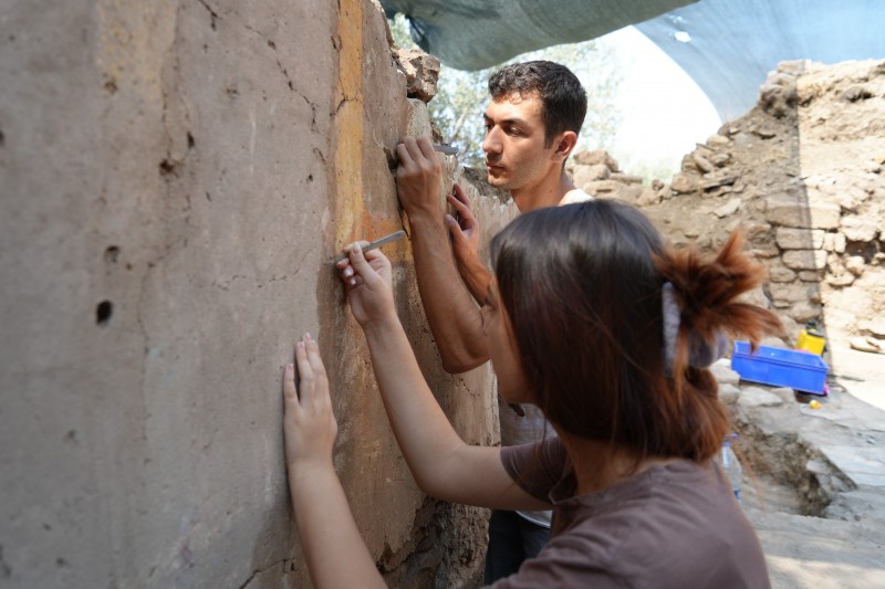 Mekanda iki farklı dönemden kalma fresk bulunduğunu kaydeden Polat, "İlk fresk MS 300 yılına tarihleniyor. Fonksiyon değişiminin ardından, yani 5. yüzyılın ortalarında ise duvarlar dönemin modası olan bitkisel ve panel bezemelerle süslenmiş. Fakat bu süslemelerin üstü yoğun kireç tabakasıyla kaplı. Ekip arkadaşlarımız şu anda bu tabakayı temizleyerek esas motifleri ortaya çıkarıyor" diye konuştu.