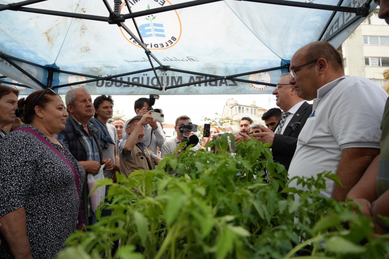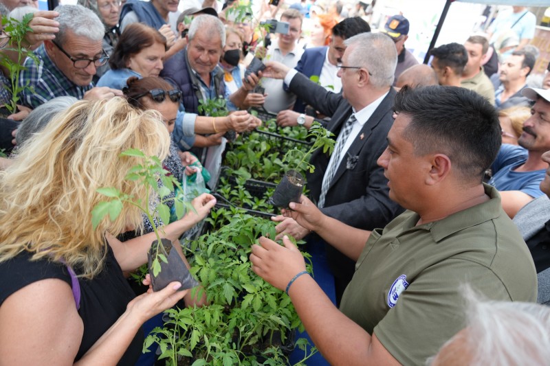 Edremit Belediye Başkanı Mehmet Ertaş'ın öncülüğünde gerçekleştirilen etkinlikte, Edremit Belediyesi Tarımsal Hizmetler Müdürlüğü bünyesinde ata tohumlarından üretilen pembe domates, sivri kıl biber ve uzun patlıcan fideleri, Cumhuriyet Meydanı'nda vatandaşlarla buluşturuldu.