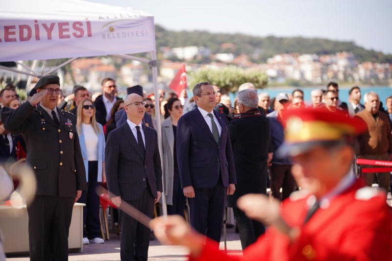 Cumhuriyet Meydanı’nda gerçekleştirilen tören, saygı duruşu ve İstiklal Marşı ile devam etti. Çelenk takdimleri ve vatandaşların Atatürk anıtına çiçek sunumunun ardından Ayvalık Belediye Başkanı Mesut Ergin yaptığı konuşmada, 91 yıl önce, bugün Ayvalık’a gelip bu toprakları ziyaret eden Ulu Önder Mustafa Kemal Atatürk’ün güzergâhından yürüyerek halkın karşısına gelmekten duyduğu mutluluğu dile getirdi. 13 Nisan 1934 tarihinde Atatürk’ün o günlerde yaptığı yurt gezileri kapsamında Ayvalık’ı da 91 yıl önce ziyaret ettiğini hatırlatan Başkan Ergin şöyle konuştu: