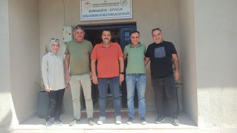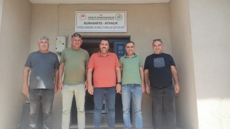 Balıkesir’in Burhaniye İlçesinde faaliyet gösteren, Tarım ve Orman Bakanlığı, Doğa Koruma ve Milli Parklar Genel Müdürlüğü (DKMP), Balıkesir Şube Müdürlüğüne bağlı Burhaniye Şefliği’ne yeni atanan Burak Yeşiltaş’a Fahri Av Müfettişi M. Mahmud Aydın ve Edremit Tuzcumurat Mahallesi Muhtarı Hüseyin Burma hayırlı olsun ziyaretinde bulundu.