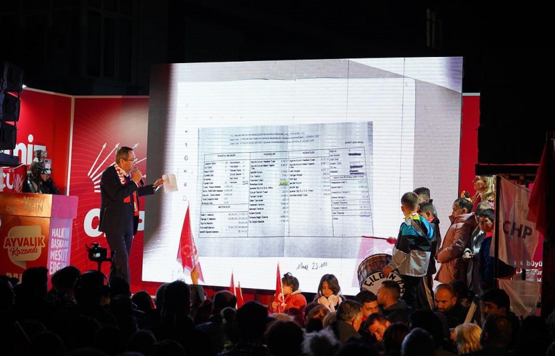 Başkan Ergin; “AKP adayı her gün ne kadar saklansa da logo kullanmasa da partisine benziyor. Bu AKP'liler en çok neye benziyor biliyor musunuz? Kırmızı Başlıklı Kızın masalını herkes bilir. Küçük kızı yemeyi kafasına koyan kurt, kızın büyük annesinin kılığına girer. Bunlar kuzu postu giymiş kurt. Onun için yılın 365 günü Mustafa Kemal Atatürk ismini bu ülke insanlarının hafızasından silmeye çalışırken, ne zaman başları sıkışsa Atatürkçü maskesini takarlar.” diyerek Ayvalık halkının bu maskeyi indireceğini kimin Atatürkçü olduğunu, kimin onun adının arkasına saklandığını gayet iyi bildiğini söyledi.