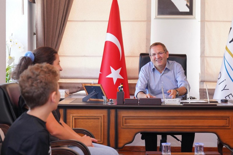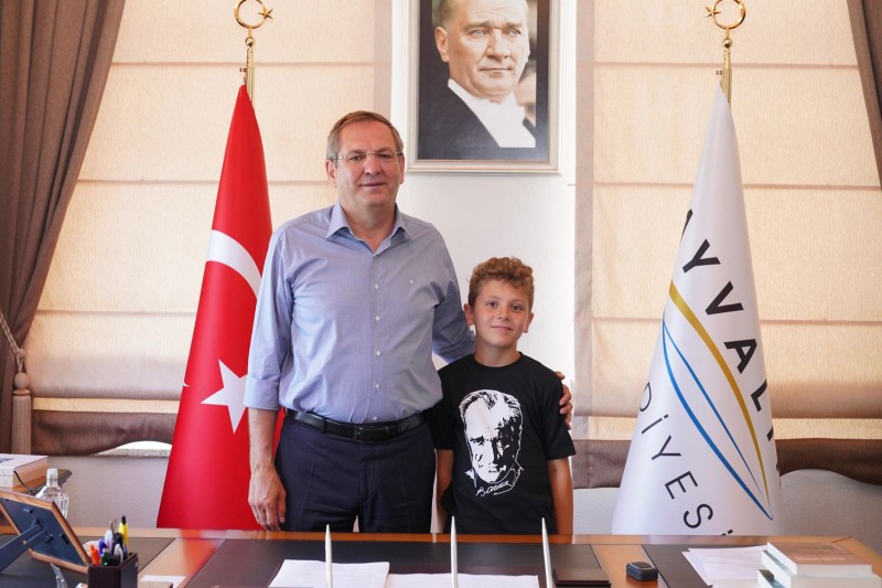 Darüşşafaka Sınavı’nda Türkiye 1.’si olan Ayvalık’ın gururu Ayvalık Atatürk İlkokulu öğrencisi Çınar Şenel’le buluşan Ayvalık Belediye Başkanı Mesut Ergin yaptığı açıklamada; “Türkiye 1.’miz Çınar’la bir araya geldik. Ayvalık’tan yeni bir hikaye filizleniyor, o ışık saçan gözlerinden öpüyorum, yolun açık, hayallerin gerçek olsun. Darüşşafaka Sınavı’nda Türkiye 1.’si olarak bizleri gururlandıran, Ayvalık Atatürk İlkokulu öğrencisi Çınar Şenel’i annesi Esma Hanım, öğretmeni Nafiye Nur Budak ve Darüşşafaka Cemiyeti Balıkesir İl Sorumlusu Erkan Uzel ile birlikte misafir ettik, emeklerinden dolayı kendilerine teşekkür ediyorum. Çınar’la sohbet ettik, geleceğe dair hayallerini, yapacaklarını konuştuk. Tüm çocuklarımızın her zaman yanlarında olmaya, onları kucaklamaya devam edeceğiz. Atatürk’ün emaneti Cumhuriyet’i gönül rahatlığıyla emanet edeceğimiz evlatlarımızla ve Çınar’ımızla gurur duyuyorum” dedi.