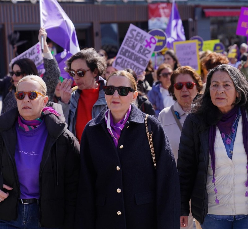Yürüyüşe katılan vatandaşları, eşi Canan Ergin ile birlikte Cumhuriyet Meydanı’nda karşılayan Başkan Mesut Ergin, kadınların eşitlik mücadelesine destek vermeye devam edeceklerini belirtti.
