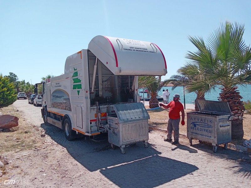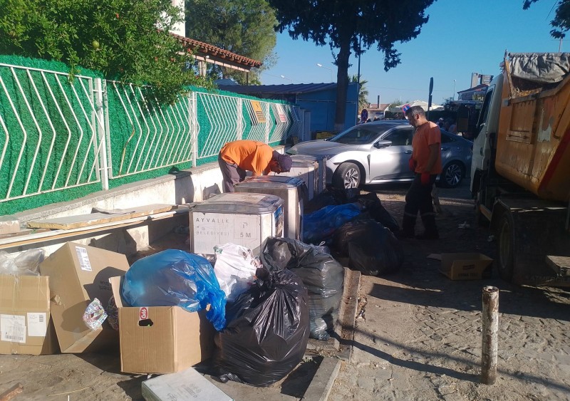 Ayvalık merkez, Cunda (Alibey) Adası, Altınova, Sarımsaklı ve Ayvalık genelinde 24 saat durmaksızın çöp toplayan 103 kişilik temizlik ekipleri bir yandan da çöp konteynerlerini yıkayarak hijyenik olmalarını sağlarken, öte yandan da araçların giremediği yerlere de bakteri ilaçlaması yaptı.