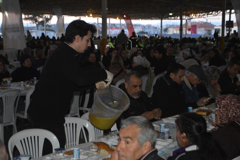 Balıkesir Büyükşehir Belediye Başkan Yardımcısı Emir Arcan'ın öncülüğünde, Ayvalık Belediye Başkan Vekili Dilek Saraçoğlu'nun ev sahipliğinde gerçekleşen iftar programında, akşam ezanının okunmasıyla vatandaşlar hep birlikte oruçlarını açtı.