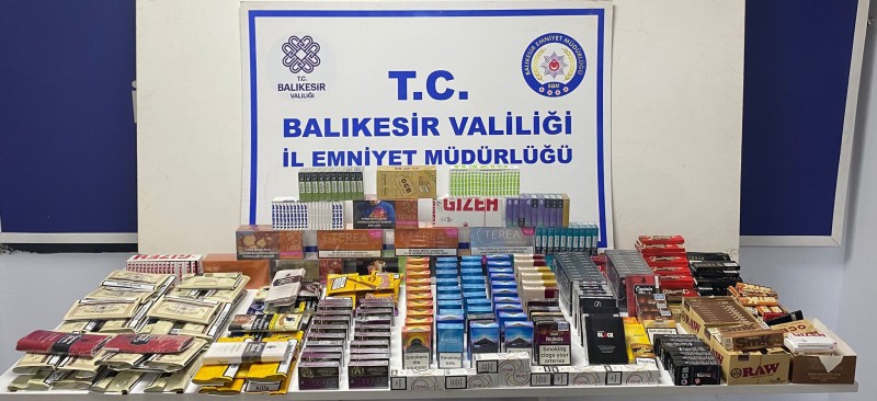 61 paket bandrolsüz gümrük kaçağı sigara, 150 paket gümrük kaçağı ısıtılmış tütün kartuşu, 43 paket gümrük kaçağı pipo tütünü, 75 adet gümrük kaçağı puro, 261 paket gümrük kaçağı tütün sarma kağıdı, 47 paket gümrük kaçağı sigara filtresi ele geçirildi.