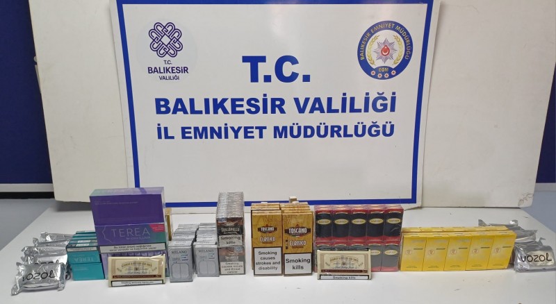 Ayvalık KOM Büro Amirliği ekiplerince yapılan çalışmalar neticesinde bir iş yerinde gerçekleştirilen aramada 60 paket bandrolsüz gümrük kaçağı ısıtılmış tütün kartuşu, 10 adet elektronik sigara, 2 paket pipo tütünü, 60 paket gümrük kaçağı sigara ve 150 adet puro ele geçirildi.
