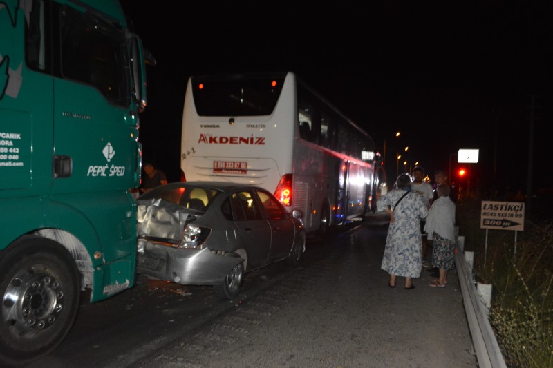 Kırmızı ışıkta bekleyen 07 BMH 278 plakalı yolcu otobüsü, arkasında bulunan 06 DA 5150 plakalı özel otomobil ve hemen ardındaki yabancı plakalı tıra, 24 yaşındaki A.B. yönetimindeki 63 ADJ 826 plakalı kamyon hızla arkadan çarptı. Çarpmanın etkisiyle, kırmızı ışıkta bekleyen araçlar birbiriyle çarpıştı. Kazada araçlara arkadan çarpan ve Şanlıurfa doğumlu olduğu öğrenilen kamyon sürücüsü A.B. ağır, araçların arasındaki özel otomobilde bulunan; araç sürücüsü Z.V.M. ile A.V.M ve M.M. isimli, iki çocuk çeşitli yerlerinden yaralandı.