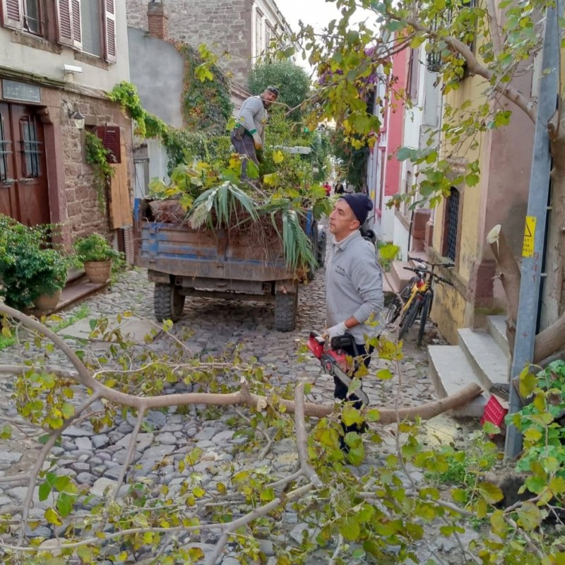 Ayvalık Belediyesi, kent genelinde başlattığı kışa hazırlık çerçevesinde temizlik ve bakım çalışmalarını hız kesmeden sürdürüyor. Belediye Park ve Bahçeler Müdürlüğü ekipleri, kent genelindeki ağaçlarda budama, bakım ve temizlik çalışmalarını planlı bir şekilde yürütüyor.