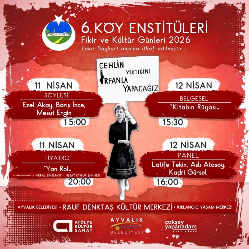 Köy Enstitüleri üzerine nitelikli ve sürekli içeriğiyle dikkat çeken etkinlik, Atölye Kültür Sanat organizasyonu ve Ayvalık Belediyesi ev sahipliğinde gerçekleştirilecek. Eğitim, bilim, kültür, sanat ve edebiyat alanlarında düzenlenen etkinlikler, bu yıl da kentin kültür gündemine katkı sunmayı hedefliyor.