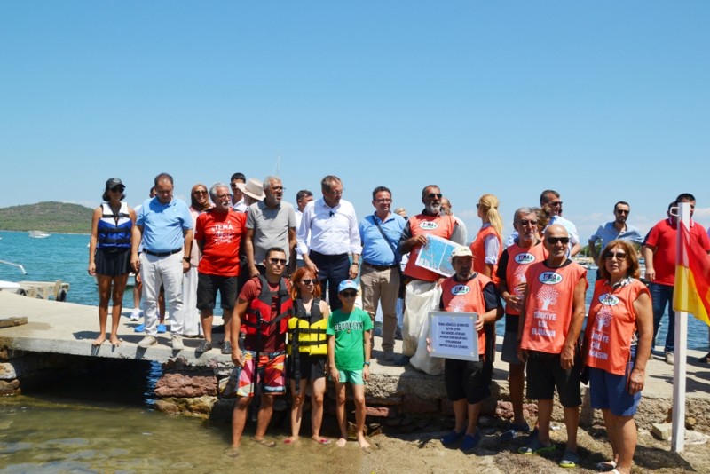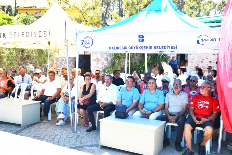Mavi Bayrak Koordinatörlerinden Doğan Karataş ile Ayvalık İlçe Sağlık Müdürü dr. Ethem Ganigil’in yanı sıra Ayvalık Belediyesi Meclis üyelerinin de hazır bulunduğu ve saat 11.00’de başlayan resmi törende; saygı duruşu ve akabinde İstiklal Marşı ile süren törende konuşan TEMA Vakfı Ayvalık Şubesi yöneticilerinden Bilgi Yılmaz, vakıf şubesi olarak Ayvalık’ta yaptıkları çalışmaların yanı sıra Ayvalık Belediyesi, TÜRÇEV ve TEMA Vakfı tarafından düzenlenen etkinliğin bir ilk olduğunu ve bu etkinliklerin önümüzdeki süreçte artarak sürdürüleceğini vurguladı.