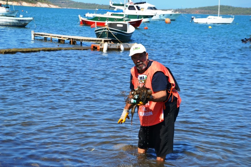 Etkinlik sırasında Ayvalıklı gönüllü çevreci ve dalgıç Çetin İşten tarafından ilçe merkezindeki dalışlarda deniz dibinden çıkarılan atıklar sergilendi.