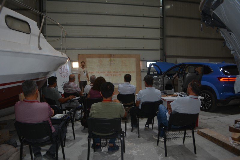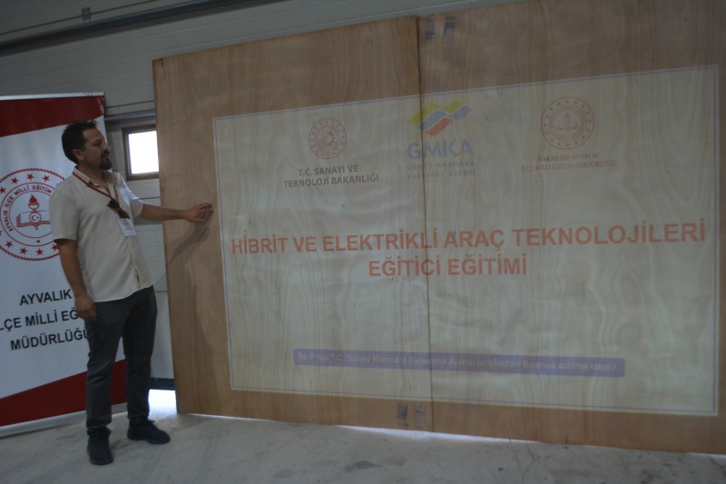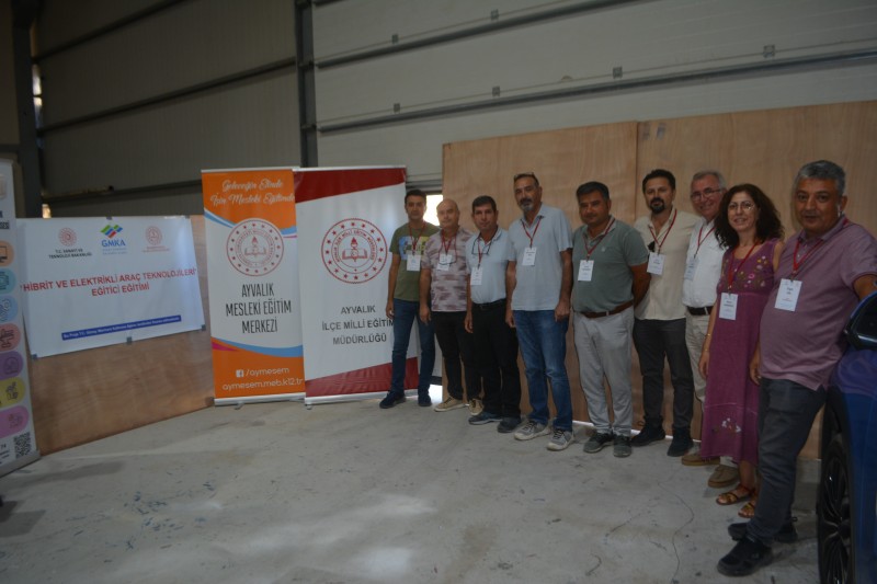 Ayvalık Mesleki Eğitim Merkezi ve Şehit Abdullah Tayyip Olçok Mesleki ve Teknik Anadolu Lisesi öğretmenlerinin katıldığı eğitim programında, katılımcılara temiz enerji, sürdürülebilir ulaşım, batarya teknolojileri, şarj sistemleri ve elektrikli araç bakım-onarım uygulamaları gibi konularda bilgi ve beceri kazandırılacağı bildirildi.