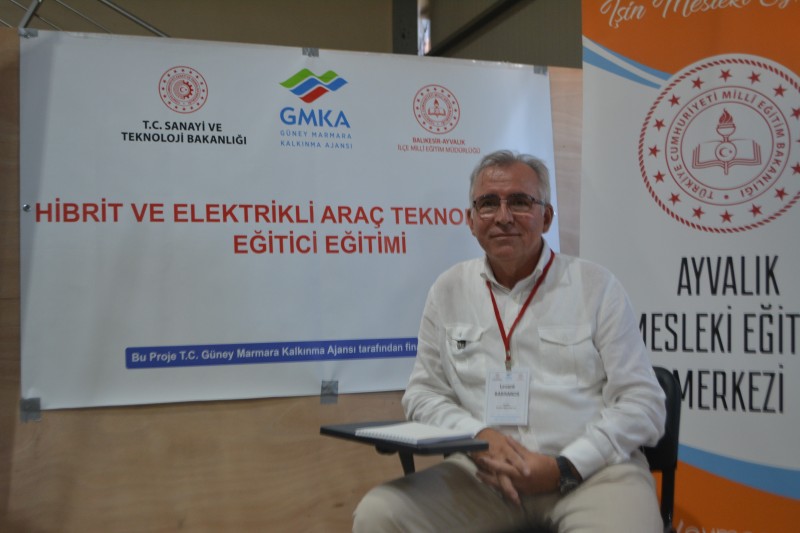 Aldıkları eğitimlerle ilgili açıklamalarda bulunan Ayvalık Mesleki Merkez Müdürü Levent Barbaros, mesleki eğitim dünyada teknolojik alanlarda olduğu gibi araçların da teknolojisi alanında büyük bir değişim ve gelişime uğradığını savunarak, "Üretim anlamında elektrikli araç teknolojisi adına büyük bir hamle içerisine girilmesinin sonucunda da teknolojideki bu değişim altyapıda ona hizmet veren nitelikli insan gücüne ihtiyaç hissettiriyor. Ayvalık'ta, İlçe Milli Eğitim Müdürlüğü'nün desteğiyle bölgemizdeki elektrikli araç teknolojisi alanında ihtiyaç duyulan nitelikli personelin yetiştirilmesi amacıyla elektrik elektronik teknolojisi ve motorlu araçlar teknolojileri öğretmeni arkadaşlarımızın eğitimini burada gerçekleştiriyoruz. Bu projemiz Sanayi ve Ticaret Bakanlığı'na bağlı olan Güney Marmara Kalkınma Ajansı teknik destek programında gerçekleştirmiş olup, ilçe milli eğitim müdürlüğümüz tarafından yazılımı sunulmuş olan projenin kabulü ile gerçekleşti. Bu proje kapsamında ilçemizde bulunan 10 teknik öğretmen arkadaşımız, hibrit ve elektrikli araçlar konusunda eğitim alıp bir eğitici eğitimi gerçekleştirmiş olacaklar. Amacımız; bundan sonraki aşamada öğretmen arkadaşlarımızla birlikte öğrencilerimizin ve sanayide hizmet veren sektörde hizmet veren iş sahiplerinin bu alanda bilgilendirip, bilgi ve becerilerinin artırılması olacak. Bu sayede hem bölgemizde hem ülkemizde ihtiyaç duyulan nitelikli eleman ihtiyacına da cevap vermeye çalışacağız" dedi.