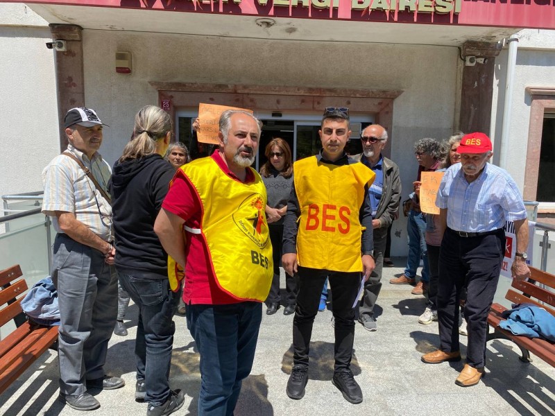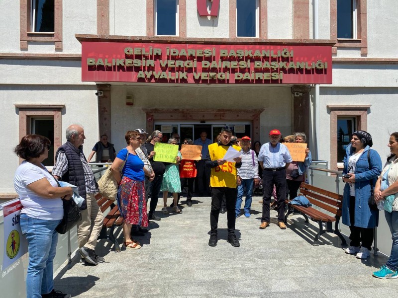 Ayvalık’ta Vergi Dairesi binası önünde toplanan BES üyeleri yaptıkları basın açıklamasıyla tasarıya sert tepki gösterdi.